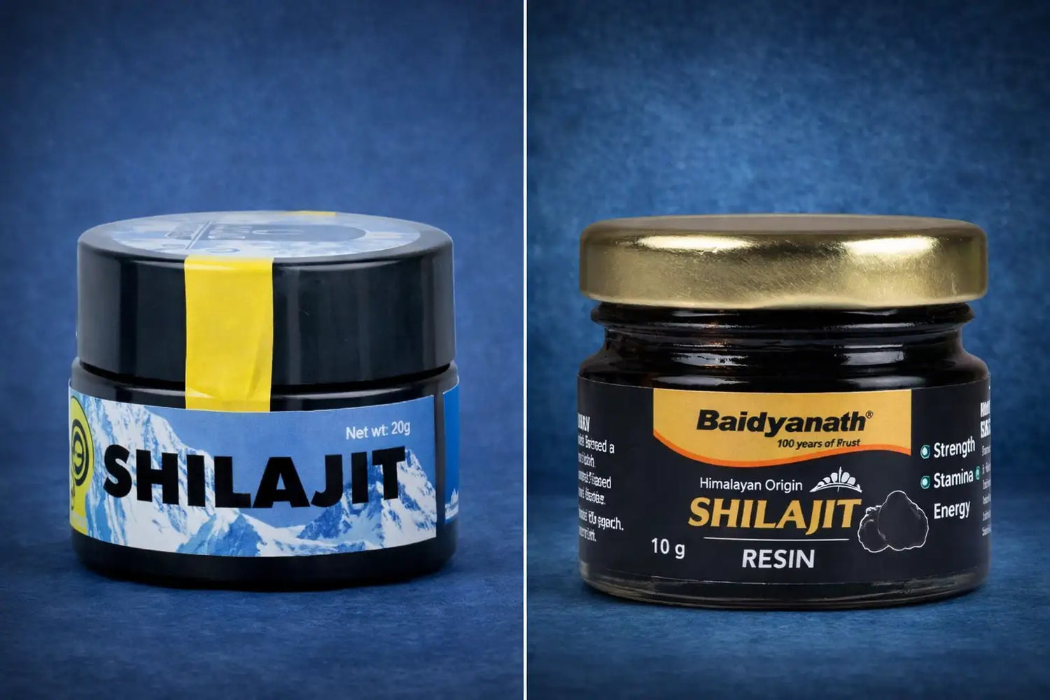 Both are authentic shilajit. Authenticity, operationally, means the material is a genuine high-altitude Himalayan mineral-pitch exudate containing the dibenzo-alpha-pyrone chromoprotein complex, purified via traditional shodhana, and free of heavy-metal contamination at consumer-safe levels. Baidyanath has 108 years of Ayurvedic manufacturing track record. Yeti Life verifies authenticity via Eurofins per batch. Different evidence paths, same authenticity criterion.